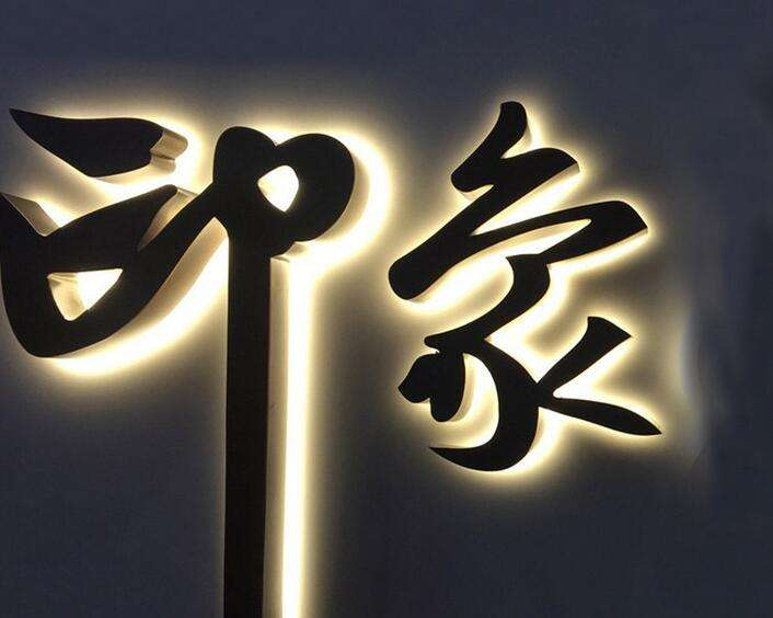 背发光字多采用不锈钢金属字壳与亚克力厚板镶嵌而成。其品质取决于字壳焊接的精准程度,考验的是制作工匠的手工技艺。同样采用激光切割基准面,数控设备自动开槽弯边,激光焊或者锡焊围边。让金属部分和亚克力厚板接缝处不留缝隙。内置高亮LED模组,朝背面打光,使字和背景交相辉映,高贵和精致完美结合,从而彰显品牌的高端形象。
