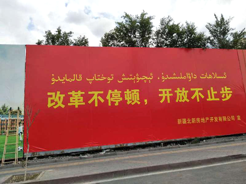 2018年6月14号我公司为乌鲁木齐北新·华域龙湾安装户外广告合资布2000多个平方,经过几天不懈的加班安装,施工完成后使这片天府之地换上了一套华丽的夏装。并且得到了北新·华域龙湾领导高度赞赏。